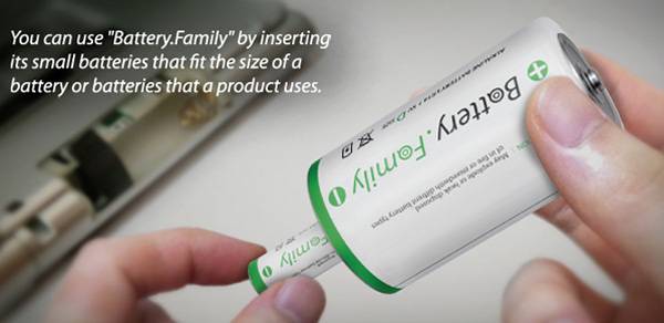 来自设计师Soohwan Kim等人的创意,电池的一家(Battery.Family),1号电池的中间,从大到小地塞着2号电池、5号电池和7号电池,每一个大号的电池,都包含着所有小号的电池,于是,你只需要买一节1号电池,其余尺寸的电池就都有了,可以组合在一起用,当然也可以分开来使用。