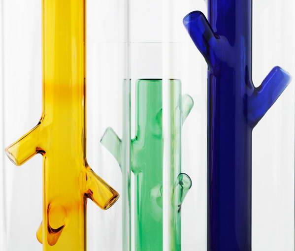 设计师Giorgio Bonaguro推出的“根”系列花瓶,拥有鲜艳的色彩和媲美化学实验器皿的审美,作为一个独特的家用花瓶装饰,其令人眼前一亮的分层设计是不常见的,花瓶由硼硅酸盐玻璃吹制而成,可以想象,依靠人工吹制达到精美的根系造型是需要一番功夫的,该花瓶两个方向都可以使用,可以一枝独秀,也可以翻过来群芳争艳。花瓶本就是装饰,实用性暂且不去深究,作为装点家居的藏物来说,还是很有吸引力的。