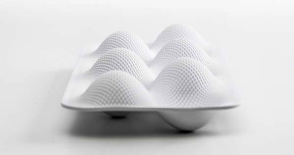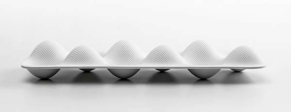 “eggwave”是一个放在冰箱里的鸡蛋包装盒。这个产品是werteloberfell与tobias schmidt合作为neff厨具公司设计的,它将与neff公司生产的新型冰箱一起推出。eggwave共分两层,其中一层选用白色的塑料搭配点状的表面结构,另一层则是半透明的彩色塑料壳,它能够以三种位置嵌套在白色底盒上,分别可以盛装六个、八个或十个鸡蛋。这个设计旨在为那些成本仅几美分,用完就扔掉的日常生活用品设计一个极具雕塑感的形象和质感,进一步发展产品本身的功能性。