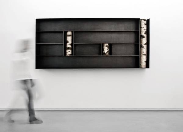意大利建筑师、设计师Andrea Branzi设计的系列搁架单元,从一个微型建筑的概念出发,采用铝质框架与嵌入的小截桦木构成,探讨自然与文化、产品与起源之间的联系。