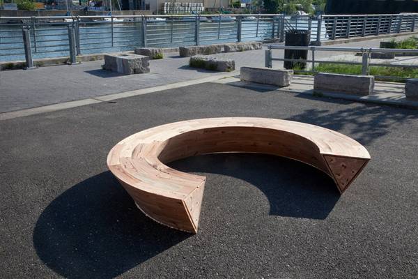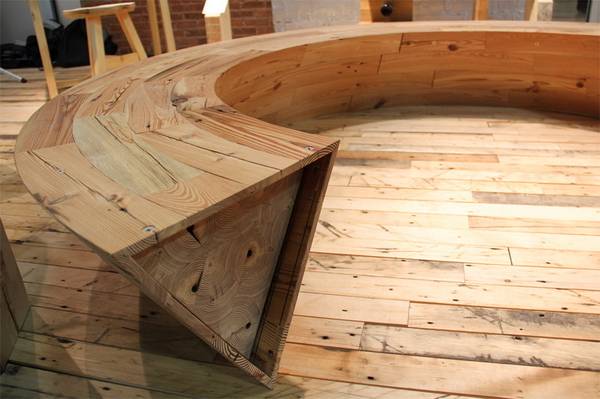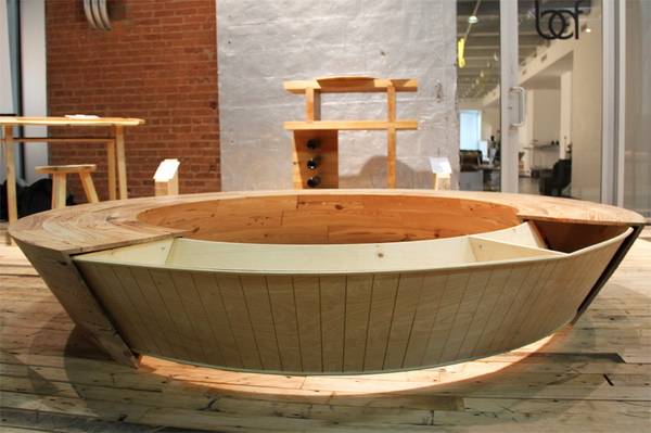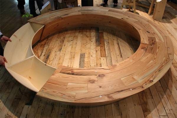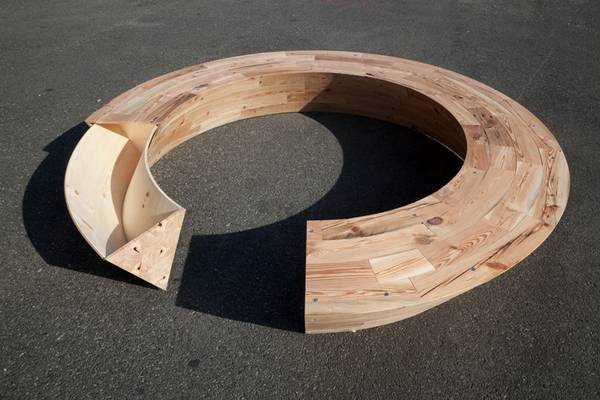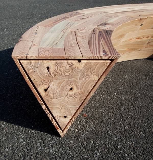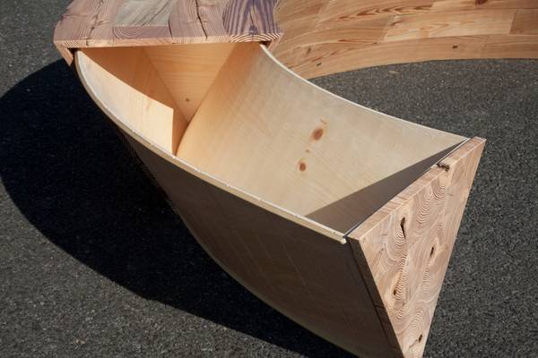 纽约设计师louis lim将一个隐藏式储物柜和一个圆形座椅结合起来,设计了“round&round”家具。这个半圆形木制家具内部隐藏了一个连续的三角形抽屉。当推挤半圆的其中一端,另一端就会显露出中心的空洞部分。每次打开抽屉,隐藏的部分便绕半圆木凳旋转,直到再次被吞没到座椅木板下方。设计师louis lim最近刚从纽约cooper union(库珀联盟)毕业,他的创作方向主要是雕塑和家具。他曾为日本设计师takeshi miyakawa工作过5年,现在和studio a+i设计定制木工产品和装置。