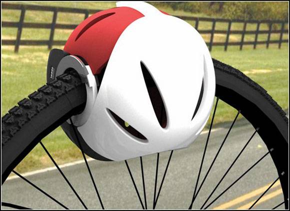 自行车失窃,是最常见最频发的盗窃事件,对此设计师也伤透了脑筋,设计出了各种防盗的机关。这个来自设计师Lim Seokjoong设计的头盔锁,看起来似乎很有效果。用头盔的形来限制自行车轮子的行动,防止强制性的盗走车辆。它看起来很结实很方便,简单的二合一设计,也减轻了自行车的负担。