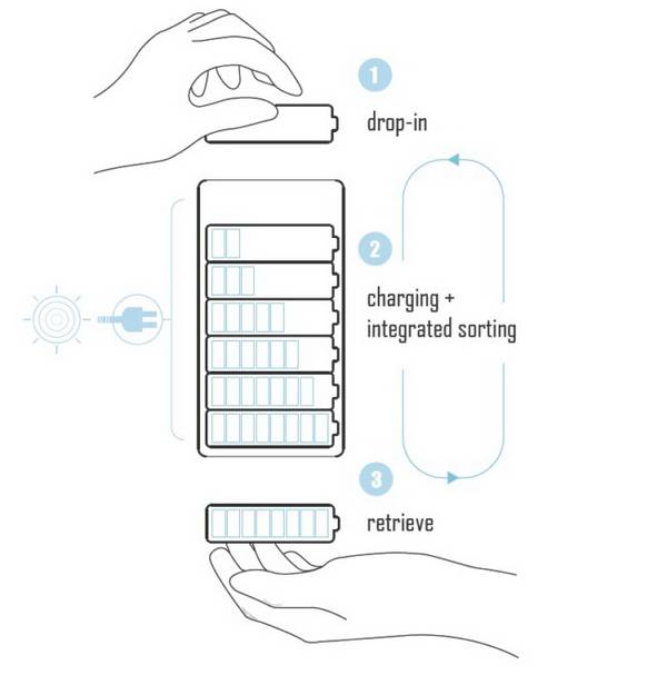 新加坡设计师Donn Koh带来的“太阳能充电器”概念设计,专为AA充电电池而设计。充电器可以吸附在阳光充足的玻璃窗,也可以采用支架的方式置于窗边。 这款电池充电器的充电能源来自于身后支架上附有的太阳能板,通过吸收太阳能光,它可以为灌入充电口的充电电池补充电量。当电量补充完毕,从上投入的电池就会落入下部出口,你只要像在自动售卖机购买饮料时那样,将出口处的挡板按下即可取出电池。