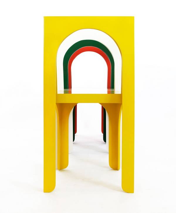 “claudio椅”的设计形式来源于建筑中有韵律的结构框架,例如拱廊和拱门。这个座椅是由西班牙公司arquitectura-G的分部 indoors设计的。设计师将传统的,厚重的拱结构,转化成一个用轻薄的木板制作的小尺度物品。椅腿组成了一个L形的横截面,它与坐面结合形成拱结构,为椅子提供良好的稳定性。椅背被设计成拱形,当若干把椅子水平排列时,它们会共同强调设计的绝对几何特性。“claudio”椅创造了一个消失点错觉,让人们联想到文艺复兴时期的透视法以及超现实主义画家giorgio de chirico 的作品。