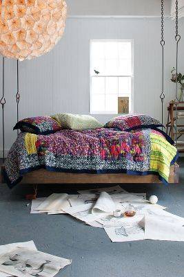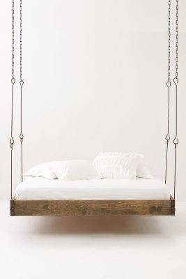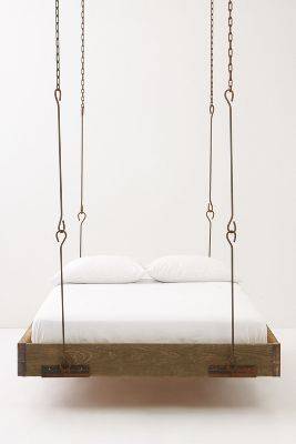 大家一定没有想过,床可以吊在屋顶上吧?anthropologie给大家带来了一款创意床,此床吊在屋顶上,增加了屋内的艺术性。