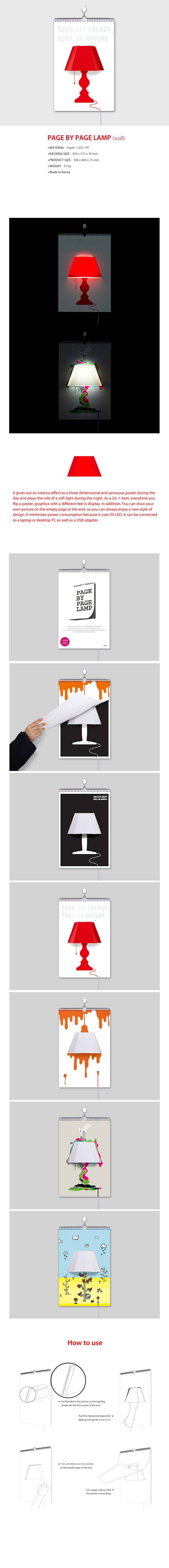 翻页台灯是由韩国Connect Design 带来的创意。将一个5V的LED灯装置在台历中央,每翻动一页就能给台灯更换新的背景,也可以自己在空白页画上图案,让台灯外观随心所变。台灯上带有USB接口,与电脑连接即可实现照明。