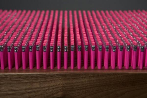 英国公司BOEX 为D&AD 制作了这把铅笔长凳,它由1600支粉红色铅笔构成,每支铅笔整齐有序的排列,并可自由插拔。坐在上面时,得益于铅笔上的橡皮,坐垫变得软软的,带给人不错的舒适感。