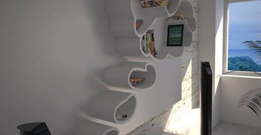 由Dripta 设计工作室设计的创意书架,将平常想象的泡泡实体化,变成了一个可爱的书架,可以放上自己喜欢的书籍,也可以充当置物架。