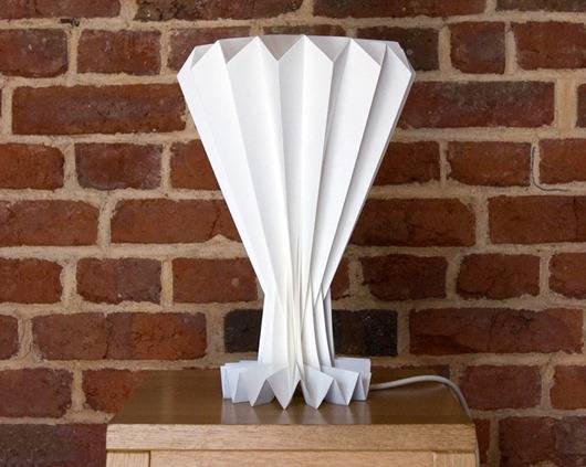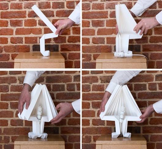 法国设计师 Nancel Duke 设计了一款简单折叠灯,买家只需要将纸折开组装,放入灯泡就可以变成一个特别的台灯了,这些纸张采用坚固的聚酯和纤维素,节能灯也是低能量输出,所以不必担心会引起火灾。