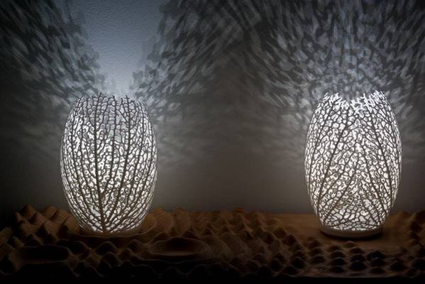 美国设计事务所nervous system (jessica rosenkrantz和jesse louis-rosenberg)一直以来都致力于模仿自然生成过程和形式,他们运用生成算法创作的最新灯具:3D打印菌丝灯,它是根据叶脉形成的方式和过程设计的。 灯具是用尼龙材料制作,内置3盏LED灯,总耗电量3.6W。灯具的使用寿命超过50,00小时,相当于连续6年的使用时间。