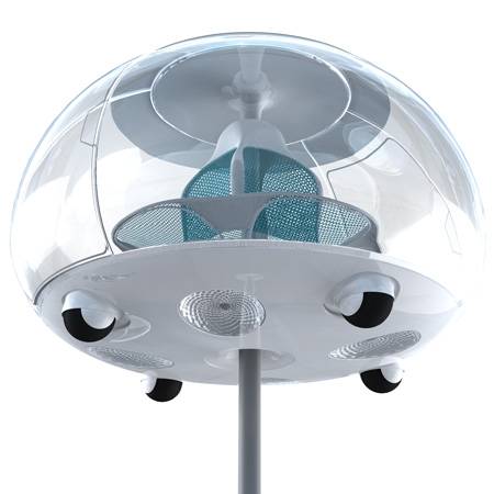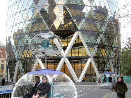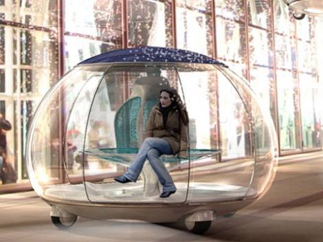 这是由工业设计师Ross Lovegrove设计的可由一根柱子支撑起来的绿色概念都市交通,这款概念车的动力是由顶部的太阳能机盖提供能源。而且最能引人入胜的地方是,在晚上,它可以由底部伸出的支柱将车体支撑起来,从而解决停车难的问题,并且可以由底部的灯为城市提供照明。