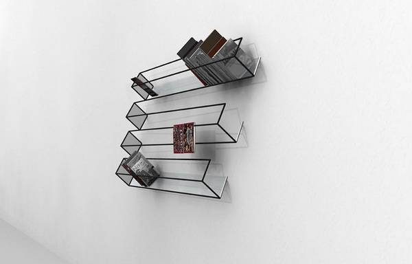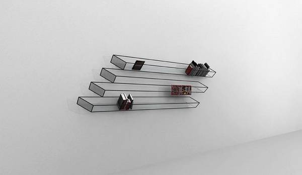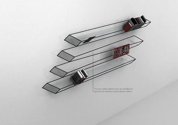 设计师利用眼睛的错觉,给我们带来了一款幽默的简洁书架。这款书架虽说只是由若干粗壮铁丝拼凑而成的,但因为它独特的造型,看来却像是素描纸上的速写画忽地浮现眼前,让我们误以为二维画面闯入了三维世界呢!其实,仔细一看,您还会发现这四层书架结构都各不相同哦!