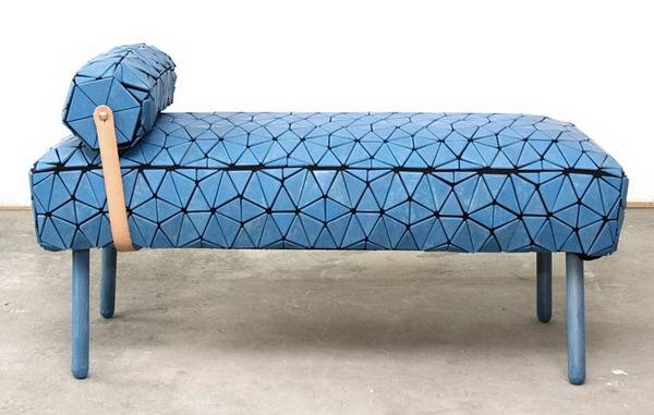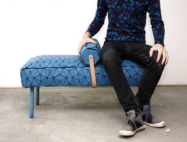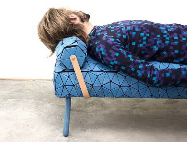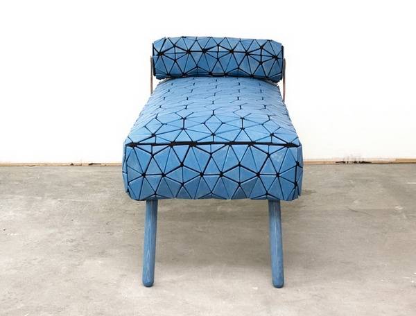 瑞典设计事务所fulo(olof nordenson 和ulf n. jevin)将在2011年斯德哥尔摩家具展览会上展出他们设计的“bits”长凳。这款家具由成千上百个从桦木胶合板上裁切下来的小三角形构成。这种切面状的,几何化表面看起来有点坚硬、不舒适,但当人一旦坐上去,就会发觉这款凳子内部还是十分柔软舒服的。“bits”长凳上还附带一个垫枕,可以根据使用着需求变成躺椅的枕头来使用。