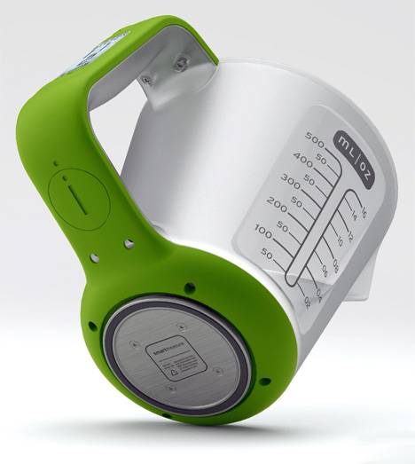 量杯可以给喜欢做饭的朋友帮上不少忙,是厨房里面的常见工具。这款智能数码量杯安装了先进的金属感压器,可以更加直观地通过LCD液晶屏显示测量数值。方便的单位换算按钮让您可以轻松地在多种计量单位间转换,当所加容量超过预设值时,机身还会发出“滴滴”的警报声。此外,这款量杯的称重部分可以摘取下来,以便您清洗杯体。预计这款产品将于今年秋天上市。