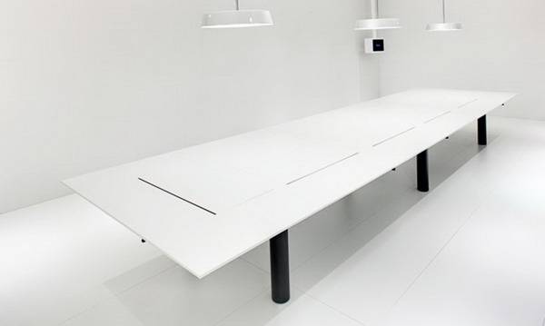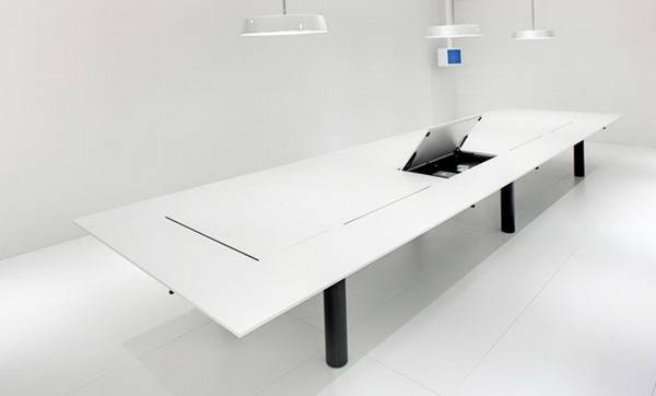 在斯德哥尔摩家具展销会上,这张由日本著名设计师深泽直人设计的储物式会议桌深受好评。这款桌子每个座位都对应有一个可封闭式的储物盒,不仅可以让使用者在其中放置私人物品,当有紧急会议时,也方便快速收拾与整理。
