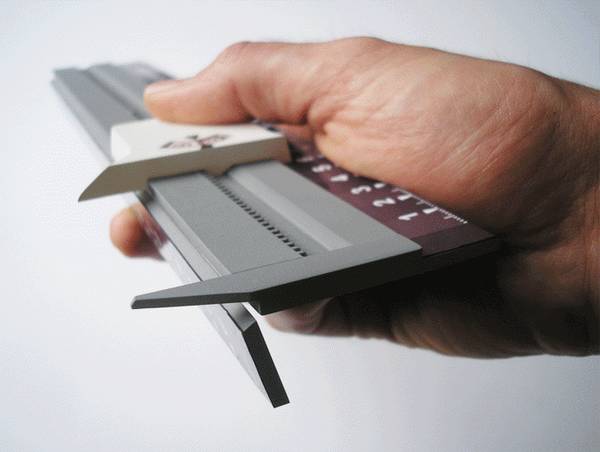 对于作图需要精细计量的设计专业学生来说,一把趁手的好尺子将会是提高工作效率的好帮手。只不过,若是在工作室呆的时间太长,疲劳的眼睛读取尺子上印刷精细的数值时,难免也会觉得吃力。所以,便有设计师给同行们推出了这款改进版新型尺。它除了在上下面均印制有精确到厘米和毫米这两个不同单位刻度的数值以外,还配备了卡尺工具,只要将尺子沿着中心翻折,卡尺便就露出,方便量取模型的长度。而卡尺上还留有一个圆盘,能够用大字符显示当前测量物体长度的毫米数值,让测量数据的读取更加精确、方便。