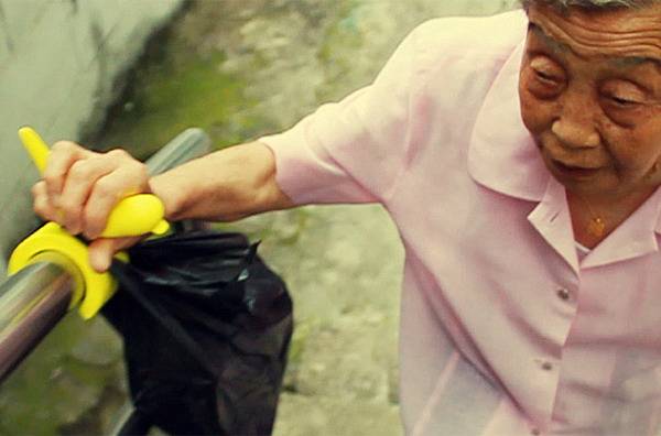 对于居住在山城的老人家来说,外出采购日常生活用品实属不易,那一层层陡峭的台阶考验着老人肌肉、关节的灵便程度,即便侧边有扶手作为助力辅助,返家时候手里提着的袋子依旧会增加老人的行走难度。所以,设计师给扶手设计了这款卡通助力配件,用鲜亮的颜色和结实的材料将一只卡通小鸟固定在栏杆上,如此一来,老人便可以在借助扶手向上攀爬的时候,将袋子挂在这个卡通配件上,减轻负担,更加轻松地走完台阶。