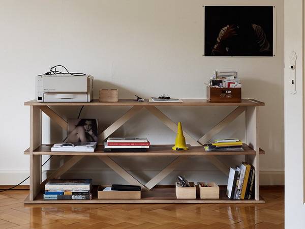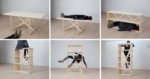 今天这家具是一个书架,也可能是餐桌、书桌、置物架。最后那张图片,有一个人类在折腾这家具,不要理解为是家具的功能描述,当然如果你想这样用也没有任何问题。她想说明一点,就是这家具很牢靠,因为它没有使用钉子、螺丝之类的辅助加固件,也无需任何工具辅助组装,将它们拼接起来即可,重要的是它很牢固。