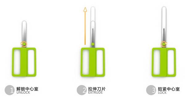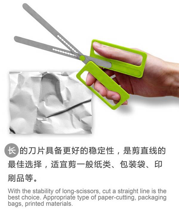 每当我们在用剪刀剪不同材料的时候,总是会遇到剪刀的一些缺点,比如剪长一点的直一点的材料会觉得剪刀短了,而在剪硬一点的材料时就发现剪刀的硬度不够,力臂长了。看来是国内设计师Jie Weng设计了一款可以伸缩的简单,可在剪不同材料的时候根据自己的需求来调节,美观且方便。