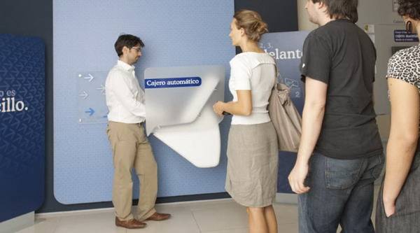 在过去的两年,IDEO设计公司一直与西班牙银行BBVA(西班牙对外银行)合作并设计了一款全新的ATM机。他们的研究结构是设计一款表面呈90度转动的AIM机,这样可以为用户提供更多的私密性。这一整套系统还包括一个19英寸的触摸屏,这个触摸屏可以让使用者的操作更加直观。在屏幕外面只有一个出钞孔,以及插卡孔,保持了界面的流线型设计。
