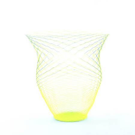 空气花瓶,是东京设计师torafu的作品。它是一个像纸碗的网络包裹着空气。你可以自由地改变它,并塑造成一个小的容器或一个花瓶的样子,根据其形状的目的改变用法。它是由薄而轻的纸质物做成,强度和耐力比较好。