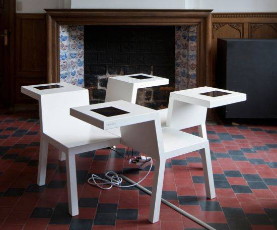 由比利时设计师Bram Boo设计的Salsa桌子,将会在比利时科特赖克室内设计双年展上展出,这种新式家具整体是一个全白色的桌子,可供四人坐下,桌上有四个集成的IPAD设备。每个用户面朝不同方向而坐,IPAD设备则位于前一个人座椅的背后。这样设计的主要目的就是展现一种“平台桌”,能让使用者在上面实用不同的媒体装置。