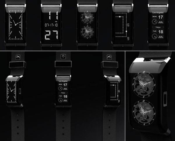 这是一个非常灵活的想法可以满足你戴一块手表时可以变换不同的外观。这款手表显示基于一块LED背景灯,但是外观不恒定,这意味着可以根据你的突发奇想随意改变。