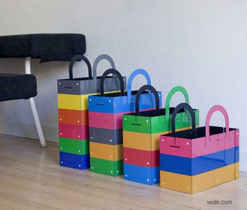 瑞典设计公司Muungano设计的Diy家用创意收纳盒,名为Husmus(housemouse)。采用环保塑料制成,通过塑料铆钉相连接,使用者可以根据自己家里存放收纳盒地方的实际情况来diy收纳盒的高度大小以便方便存放,还有多种颜色可以随意组合,喜欢Diy的朋友可以尝试下,提着上街购物也是不错的选择,每次提的大小、色彩都还不一样,时尚。