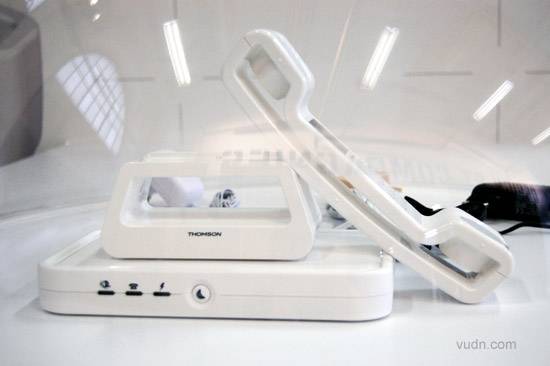 Eliumstudio为Thomson Teleclom设计的Symbio电话。Symbio与以往的电话相比增加了两个功能:一个是可以无线通话,一个是可以无线收听音乐,但是必须要安装固定的主机放在家里。听筒的造型很符合手形,可以方便的拿在手上接听电话或收听音乐。