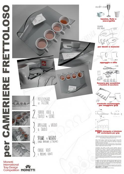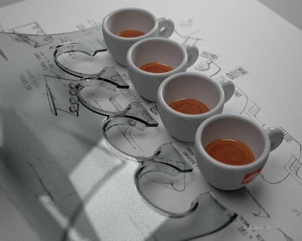透明而又新颖的外观是Vassoio Monetti 托盘的一个设计亮点,打破了以往的托盘设计模式,而且只需一只手便可方便操做四个咖啡杯,另外一只手还可以拿其他东西呢。