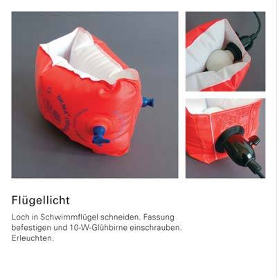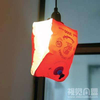 一些产品再利用或旧物改造设计,包括气垫改造的灯罩、漏斗改造的衣架、手套改造的调料瓶嘴、高尔夫球改造的耳罩、纸牌改造的提示标、蜡烛铝壳改造的相片架: