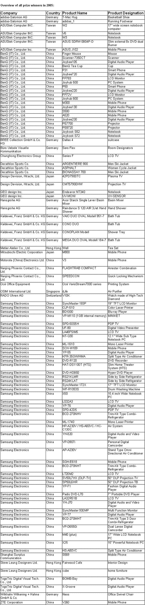 2005德国iF设计大奖获奖作品