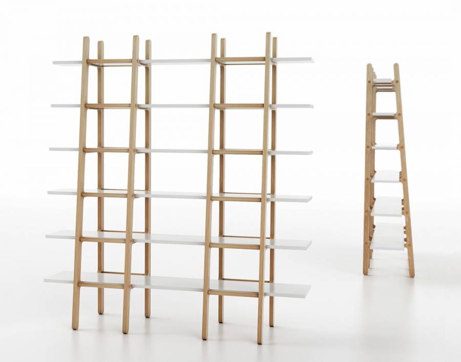 对于爱书的人来说,书架是必不可少的。为了充分利用时间,当然希望它既能层多一些,容量大一些,又能方便找到东西。设计师Marc Scimé设计了一款梯子书架Huxley,看上去就是两副木梯放在一起,每层都搭上层版,侧面看上去就像超市理货时用的高梯。最特别的地方是,你再不用到处找梯子去够上层的东西了,Huxley的承重能力不容置疑,200斤的人爬上爬下是完全没有问题的。Huxley书架可以单一使用,也可多个组合在一起,适用于任何家庭或办公室环境。