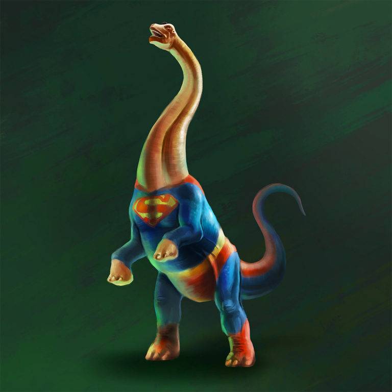 平面设计师和插画师Kolby Larsen创造了这个很酷的混搭系列,将他童年时期的恐龙融入了他对超级英雄的成年爱情。