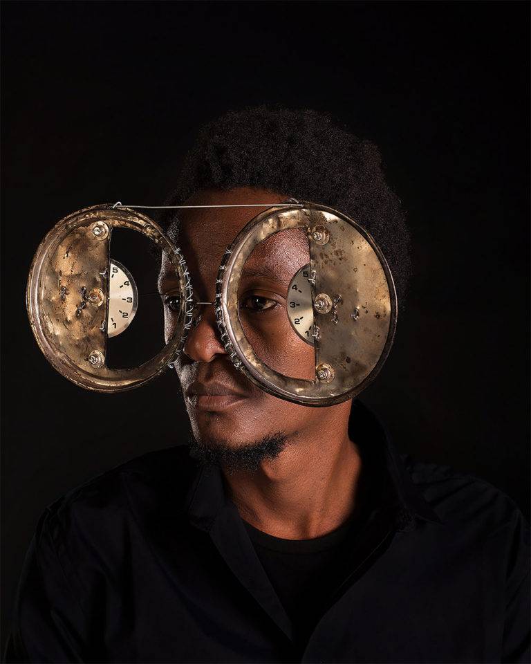 Cyrus Kabiru是来自肯尼亚的一名自学成才的艺术家,使用发现的对象创造出大胆而不寻常的眼镜雕塑。
