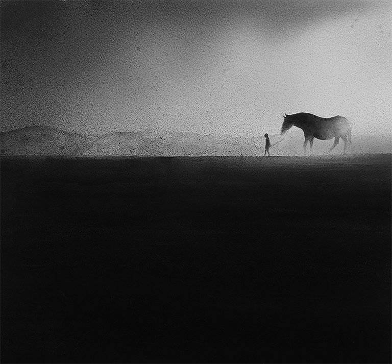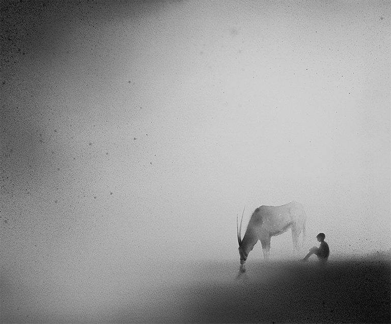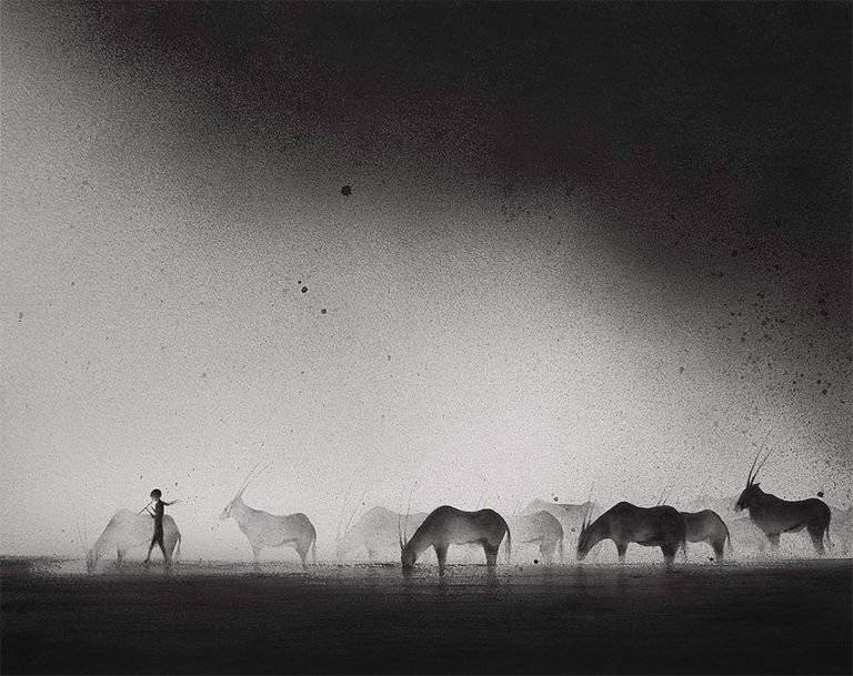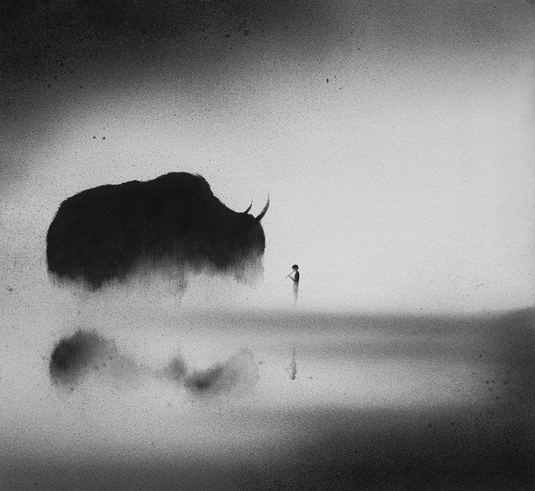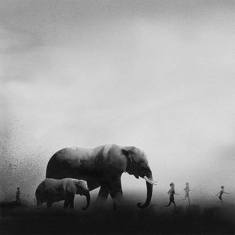 印度尼西亚艺术家Elicia Edijanto创作出平静的黑白画作,其中包括一个孩子与动物和他的环境的密切关系。从她的网站: