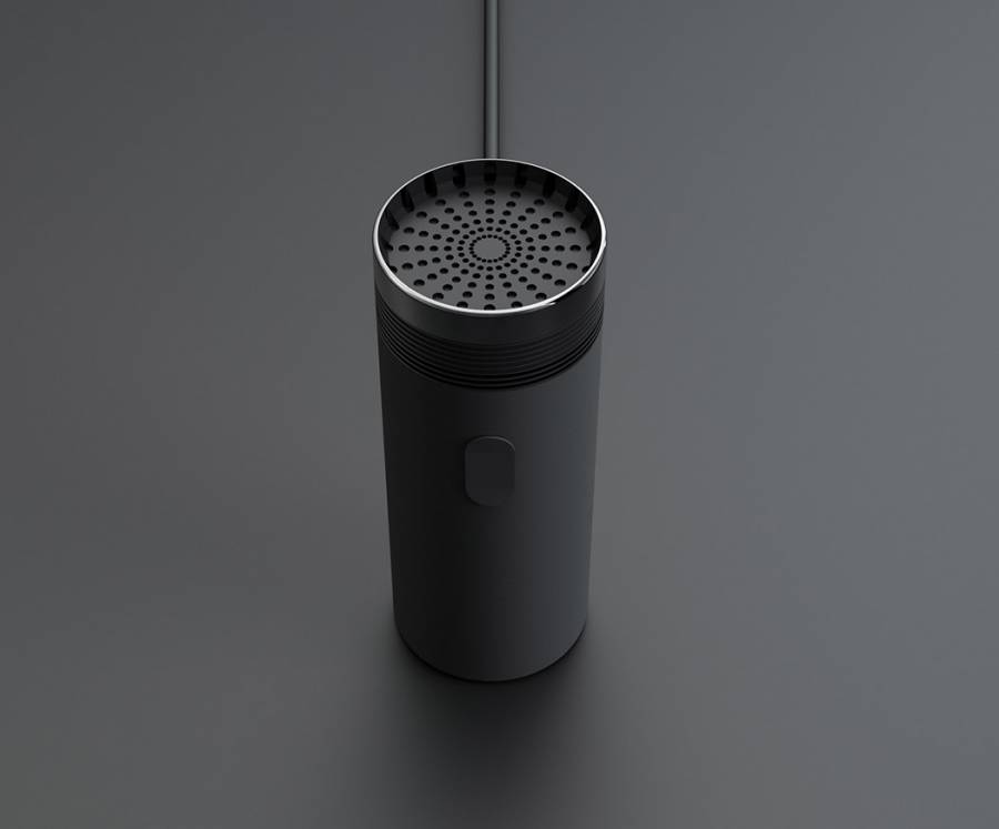 市面上的吹风机造型似乎都大同小异,一旦举着的时间稍长可能会感到手腕不适,而且不使用时该如何收纳电线也是不少人的困扰。 FONDFORM带来的这款吹风机概念设计,它的顶部是一个可以伸缩、转动的管道,收回的状态下看上去就像是一个黑色的保温杯。除了灵活调整的出风口之外,吹风机的底部也为电线预留了一个小口,可以以两种方式摆放。
