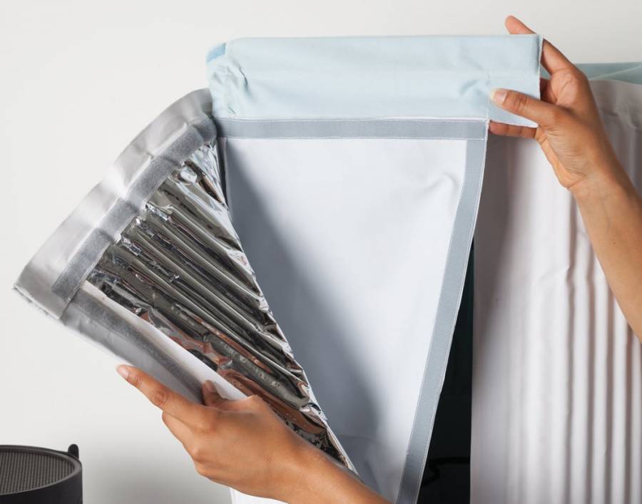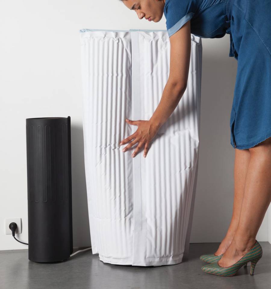 看到这造型很难让人联想到冰箱,这款冰箱采用柔软的隔热材料,而压缩机采用分离设计,并突出了它的传热功能,当需要食物解冻的时候,只要放置于压缩机圆柱上,冰冻食物就会得到迅速的解冻。它的看点还是在冰箱主要的储物部分,打开里面可见有一个个口袋,它可以放置饮料、食物等物品。里面的储物口袋采用防水纺织物,使用尼龙搭扣带与隔热外层链接,可自行拆卸,如此方便清洗。