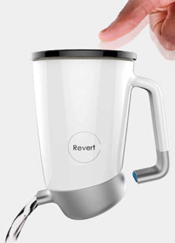 倒水这个动作对一般人来说没什么障碍,可对于那些行动不方便的老年人可就困难重重了。这款水壶看上去和普通水壶没什么区别,但巧妙的是只要将底座旋转,原本属于把手的一部分就能变成出水口,不用举起水壶就能倒水。当然,安全起见,按下瓶盖才会出水。