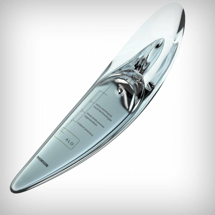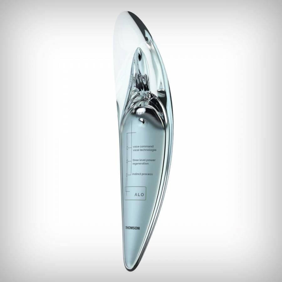 设计师Jerome Olivet用全息与语音控制技术设计一款手机Alo。Alo外壳呈半透明弧形的状态,手机机身的中央部分是由铝合金制造的,外壳很柔韧也相当于触觉界面,可以感知到温度以及振动信息。如果半透明的外壳受到损害,还会自动修复。由于全语音控制,这款手机上没有触摸屏。设计师Jerome Olivet表示,Alo所有的功能都可以通过语音来出发,包括阅读消息邮件等,同样,我们也可以通过语音输入信息,而不再是文本。Alo的摄像头就好像人的眼睛,可以阅读文本也可以识别人脸,而要看电影或者玩游戏则可以通过3D全息图像来投射。