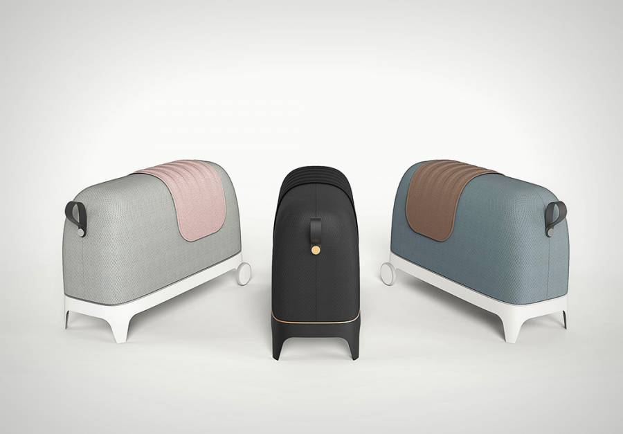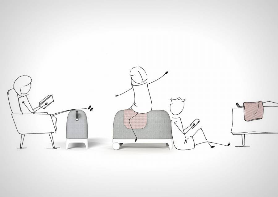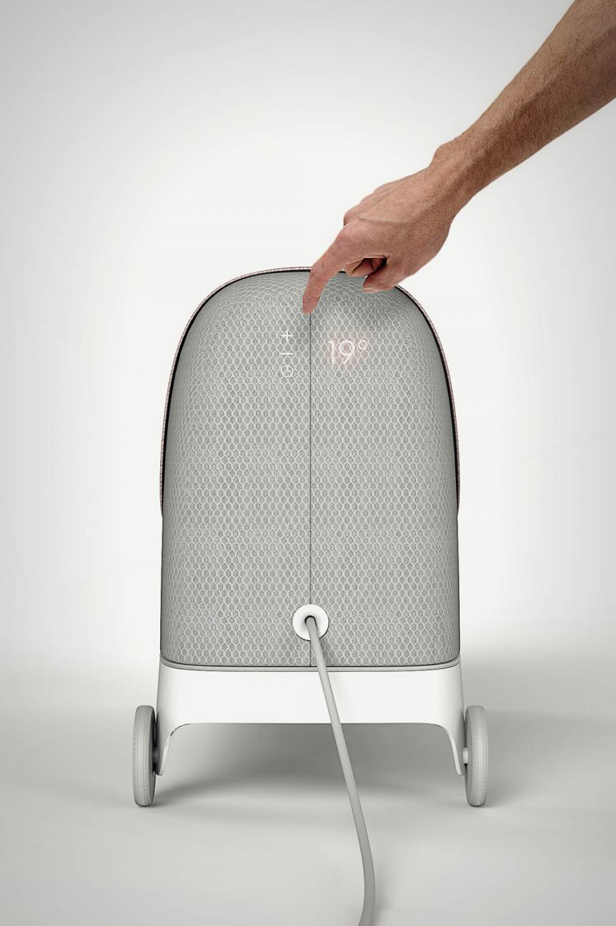设计师Tim Defleur 与 Benjamin Helle为了提高房间内的散热器和空调的工作效率,共同设计了一款名为DEGRÉ的辅助加热或制冷系统,能够为人们迅速创造一个适宜的室内温度。DEGRÉ采用了温暖的面制材料,并将其设计成有趣的造型,吸引着大家慢慢靠近,坐在旁边甚至是倚靠在旁边。这款产品向地板散热,因此热量会围绕在产品与使用者周围。热量经过泡沫与软垫材料是为了保证人们坐在上面或是将衣服放在上面的时候,其温度始终保持适宜而无害。人们可以直接在产品简洁的界面上调节温度,也可以通过智能手机进行调节。此外,DEGRÉ还设计了一个皮制把手圈,方便在房间中随意移动。