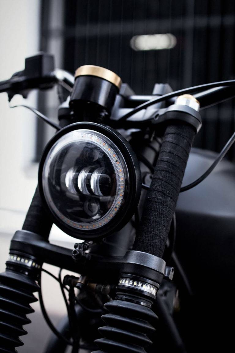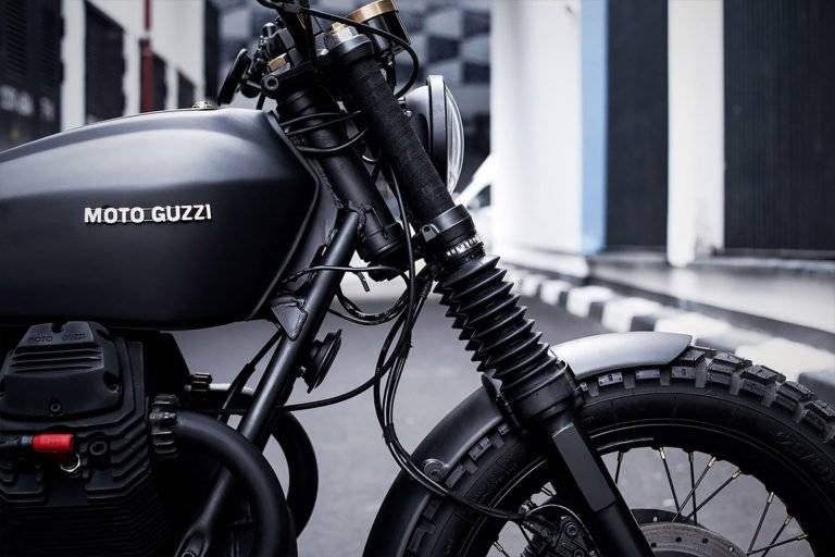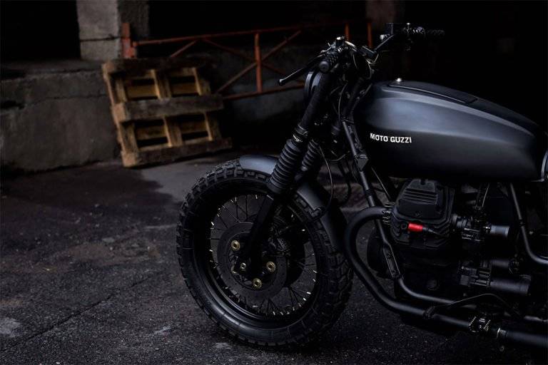 由白俄罗斯车间Recast Moto建造的这款定制Moto Guzzi Nevada 750是一款非常华丽的黑色机器。