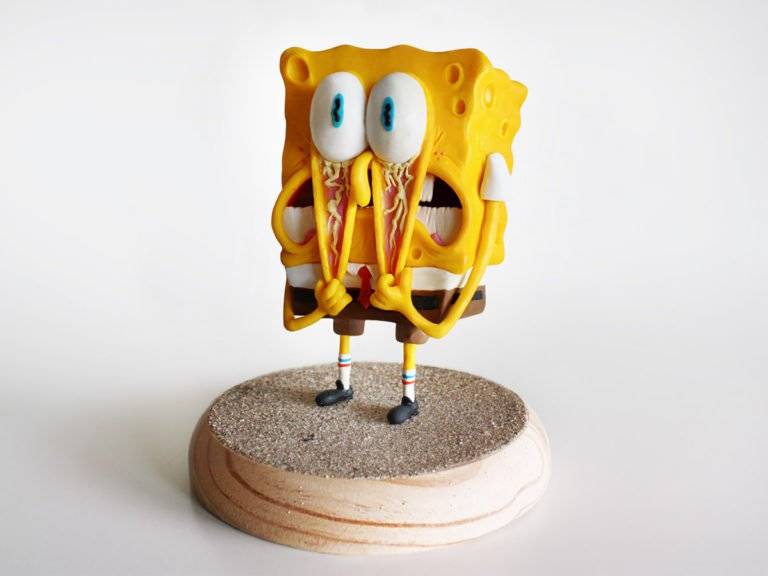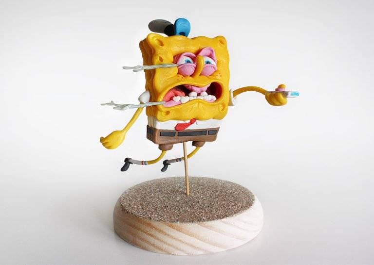 西班牙创意二人组合Alex Palazzi和Cecilia Frachia合作制作了这些超酷的橡皮泥人物,其中包括海绵宝宝广场裤的有趣面孔。