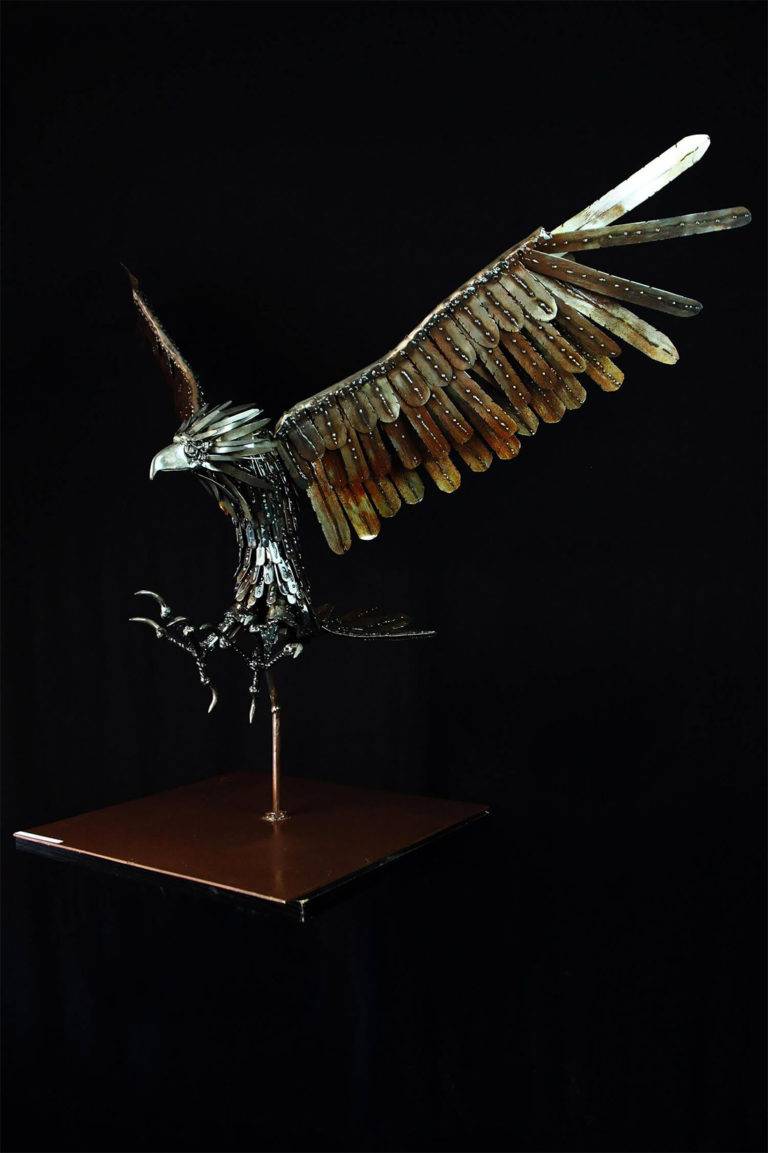 西班牙艺术家Georgie Poulariani给金属“第二次机会”通过创造他的作品主要从钢剩余物。