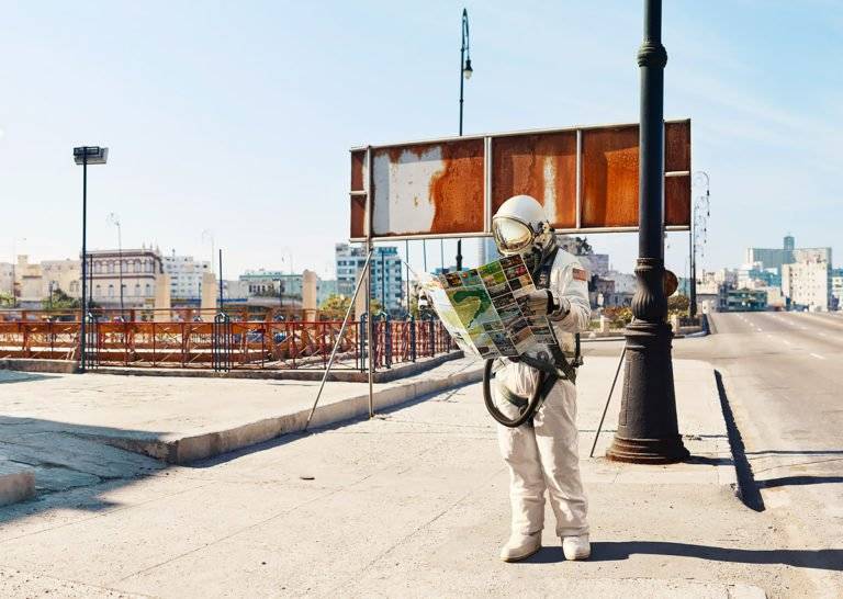 “旅行者”是由德国摄影师马克西米利安汽车旅馆拍摄的一系列有趣的图像,其中一位宇航员(工作室拍摄)叠加在古巴哈瓦那周围许多不同地点拍摄的大气照片上。