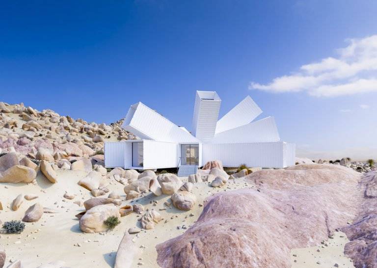 约书亚树住宅是詹姆斯惠特克的一个项目,用一个有角度的集装箱做成的房子形象化,在加利福尼亚沙漠中像一颗星爆。
