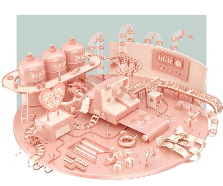 俄罗斯平面设计师Mike Voropaev定义了他最新的3D创作“#HYPE”作为对社交网络的痴迷和私人生活商业化的颂歌。