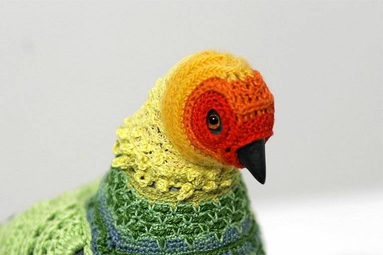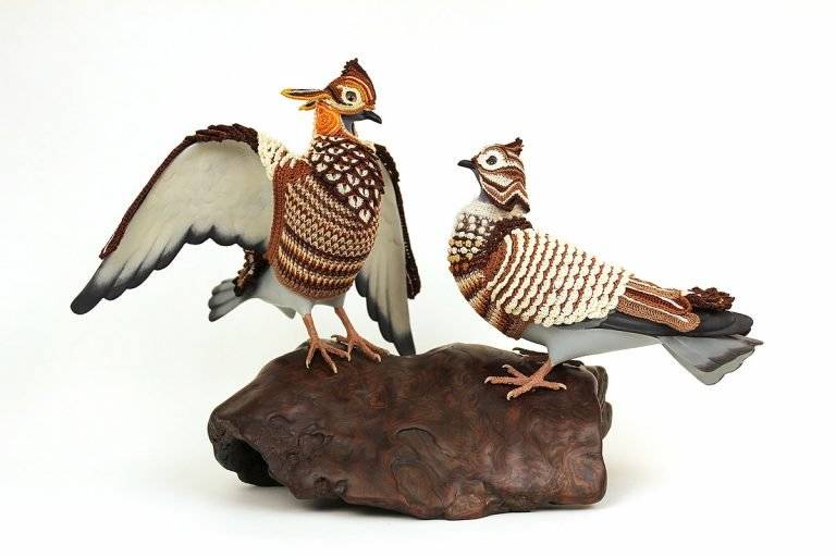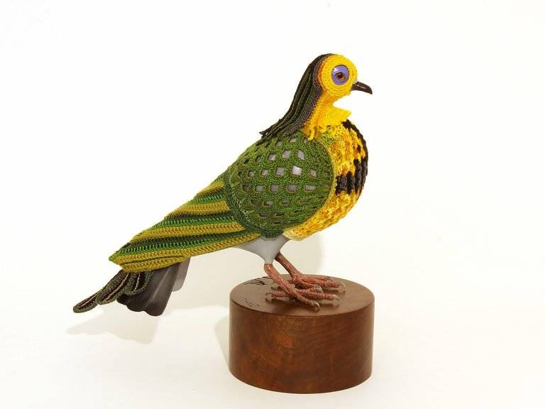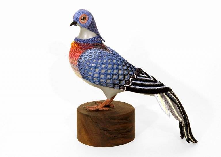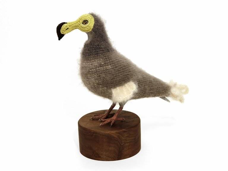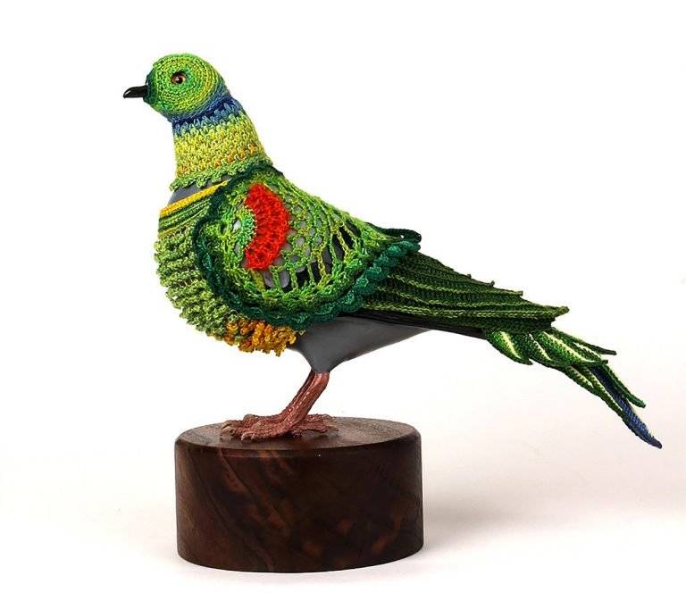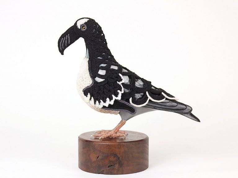 “城市鸽子生物多样性复垦套装””是由美国艺术家Laurel Roth Hope设计的系列作品,其中包括已经灭绝的鸟类的钩编套装,用来衡量无处不在的城市鸽子。