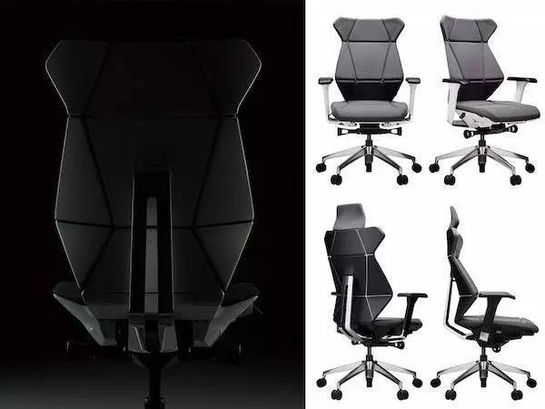这款办公椅的设计灵感来自折纸,非常灵活。椅背的部分与具有弹性的橡胶绞链连接,能自然回应使用者的动作。靠背后仰时,椅子两侧会收缩,加强支撑骨盆的力道。无论何种坐姿,都能轻松驾驭。