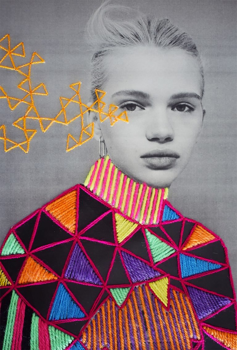 墨西哥艺术家Victoria Villasana使用传统的刺绣技术将丰富多彩的华丽和图案应用于名人的复古照片。